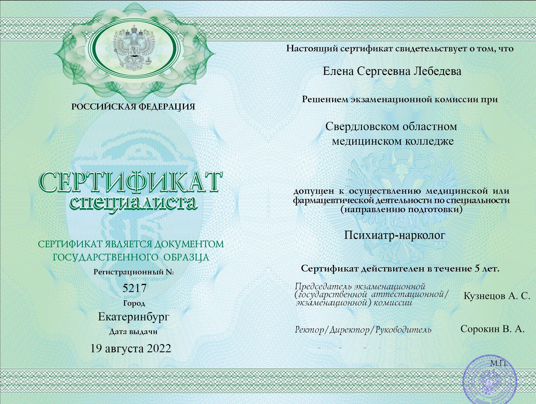 Елена Сергеевна Лебедева врач нарколог клиники доктора Стукаловой в Родниковской